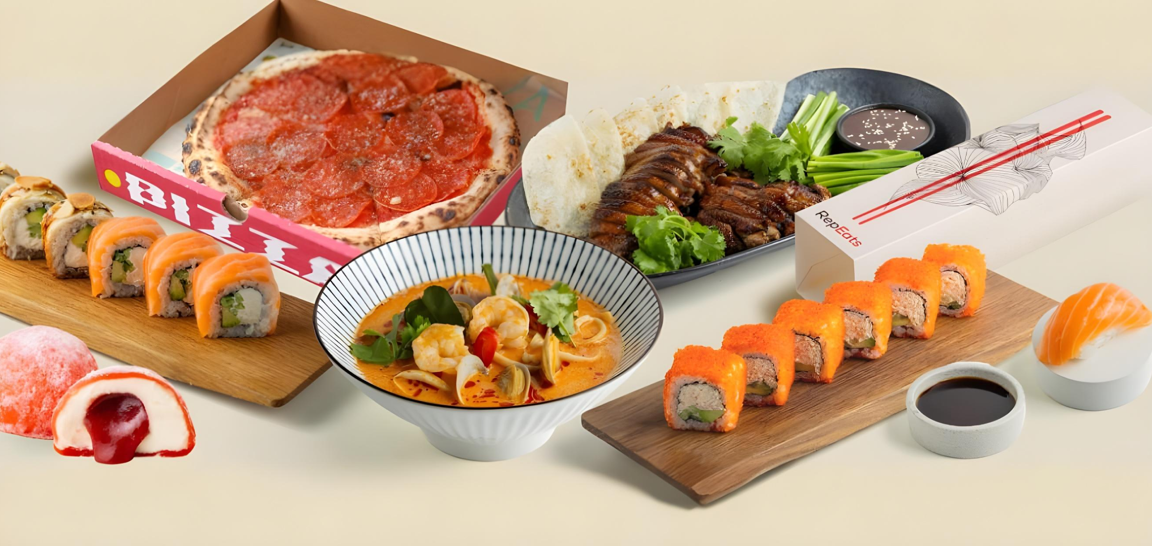 Филадельфия с лососем, калифорния с крабом, запеченный ролл с креветкой и сыром пармезан, опаленный ролл с лососем и креветкой, запеченый ролл с угрем и луком фри, ролл темпура с тартаром из тунца, ролл с лососем, авокадо и чукой, филадельфия с угрем, теплый тако-ролл с угрем