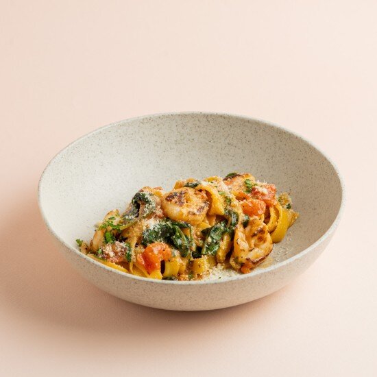 Паста с креветками и томатами