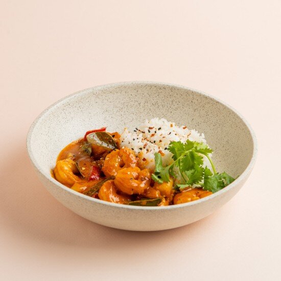 Креветки в соусе том ям с рисом