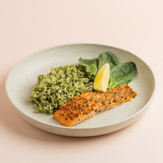 Стейк из лосося с рисом песто