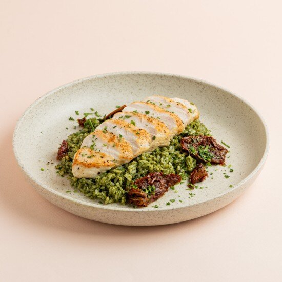 Куриная грудка с рисом песто и вялеными томатами