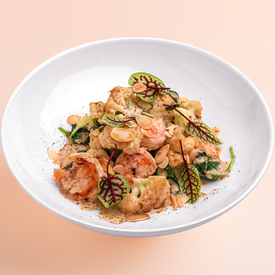 Креветки с цветной капустой в ореховом соусе