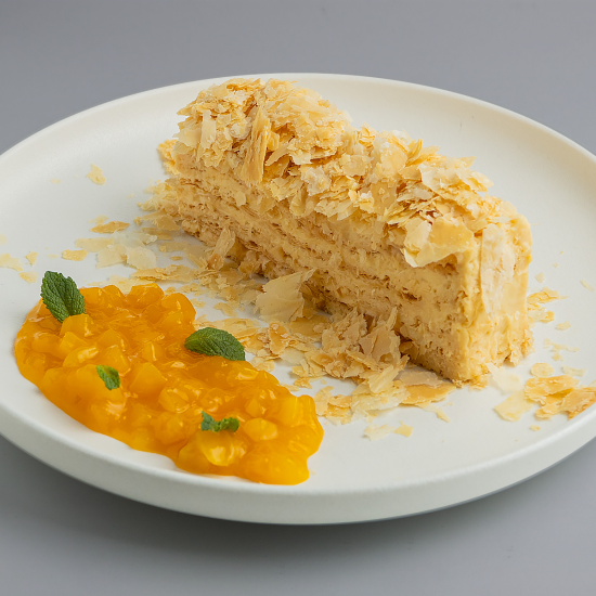 Морковный бисквит, цитрусовый кули, крем с творожным сыром и сливками