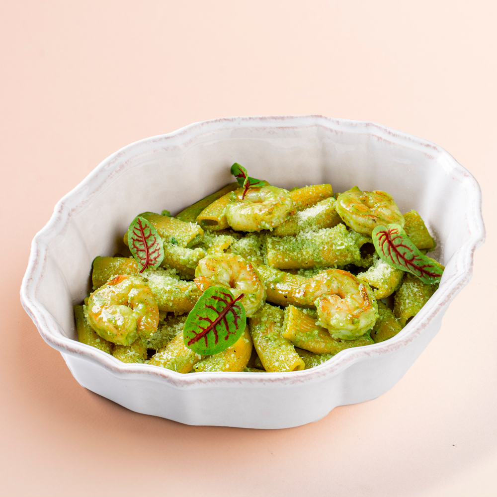 Паста с креветками в соусе песто