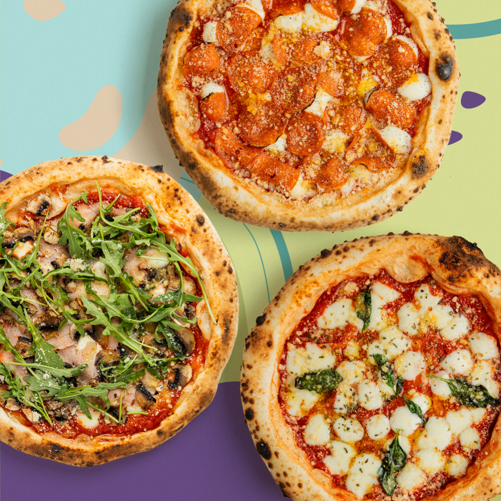 Пицца маргарита; пицца пепперони; пицца ветчина-грибы