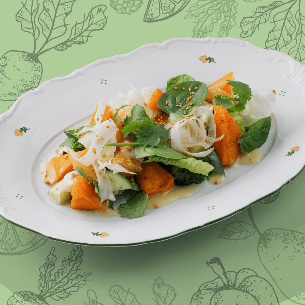 Салат из печеной тыквы с фенхелем и хумусом