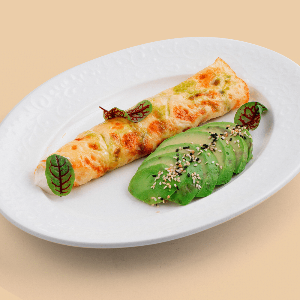 Куриное яйцо, сливки, масло сливочное, соль, перец, страчателла, авокадо, кунжут